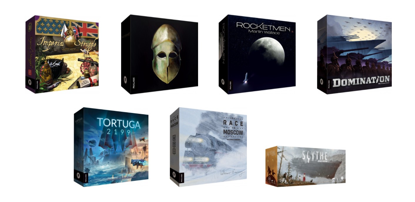 Moje ulubione „historyczne” wydawnictwo. Na Wolną Elekcję do Magnatów czekam już tyle lat, że przestałem wierzyć w jej wydanie, ale ostatnio odzyskałem nadzieję. Ciekawi mnie też dodatek do 1944: Wyścig do Renu i reimplementacja mechaniczna tej gry – 1941: Race to Moscow. Najbardziej mnie jednak interesuje jedna z najsłynniejszych „ciężkich” gier, o której polskim wydaniu chyba nikt nie śmił – Dominant Species. Widziałem ją parę razy na stole np. na Zgranym Wawrze i zawsze mnie ciekawiła, choć nigdy nie było okazji. Polska edycja to znakomita okazja, żeby w końcu podejść do tego klasyka. Ciekawie prezentują się również nowa gra od Martina Wallace’a – Rocketmen oraz dwuosobowe Imperial Struggle.